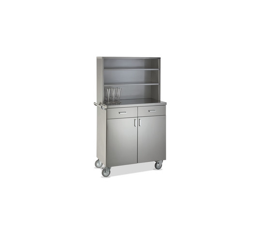Para optimizar el servicio al exterior hay una línea de muebles hecha completamente de acero inoxidable AISI 304. Línea de Polar está disponible también en la versión baja. Todos los modelos están equipados con ruedas Ø125mm, 2 con freno y una manija de empuje. Para una gestión de los cubiertos se puede elegir la versión con 2 cajones o con el práctico porta-cubiertos con 6 compartimentos (POLAR 2 B INOX + PP/F) cerrado por una puerta.