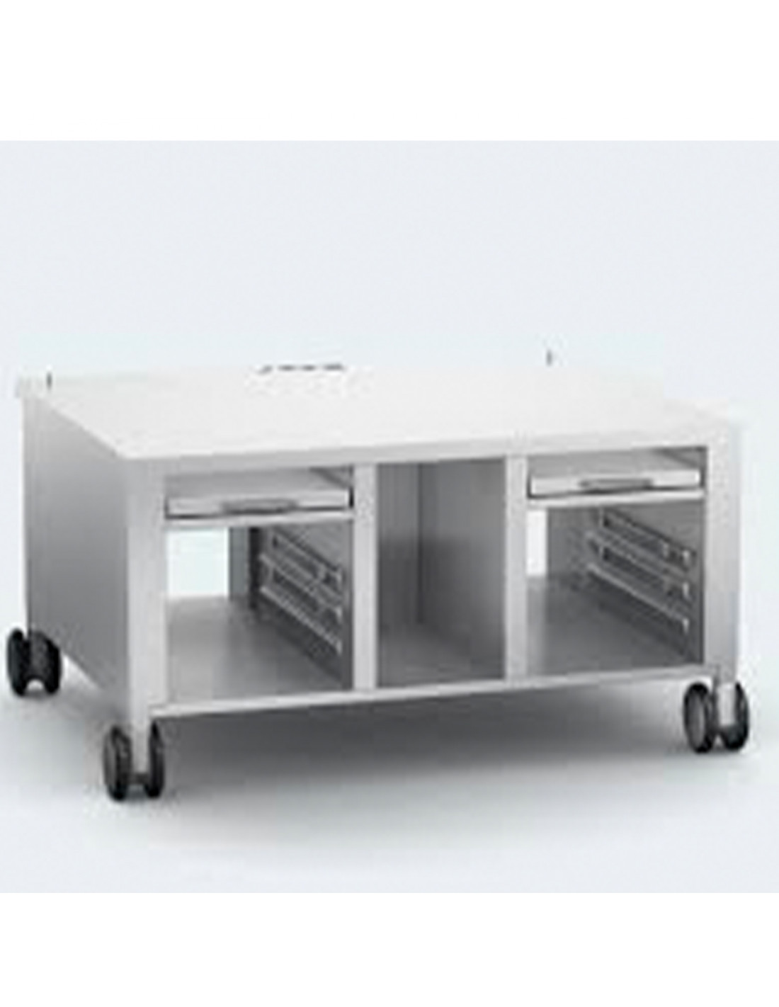 "MESA PARA IVARIO MODELO 2-S. Con ruedas móviles. Dimensiones: ancho 1100 - profundidad 899 - altura 595 mm (iVario 2-XS e iVario Pro 2-S pueden instalarse directamente sobre una mesa. Con elementos extraíbles integrados para guardar los recipientes y