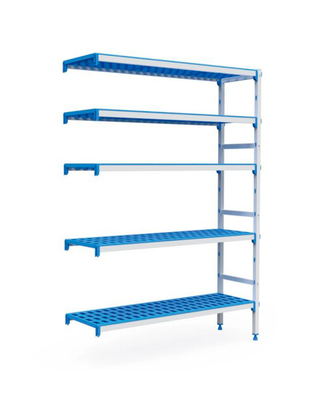 ANTICORROSIÓN: Estanterías inoxidables fabricadas con estructura de aluminio anodizado especial que las hace resistentes al frío y al calor, llegando a soportar desde -30ºC hasta +75ºC. Estantes/parrillas de polipropileno apto para uso alimentario.