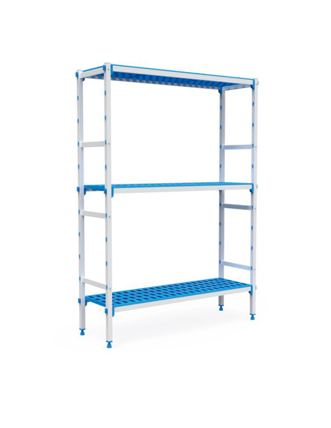 ANTICORROSIÓN: Estanterías inoxidables fabricadas con estructura de aluminio anodizado especial que las hace resistentes al frío y al calor, llegando a soportar desde -30ºC hasta +75ºC. Estantes/parrillas de polipropileno apto para uso alimentario.