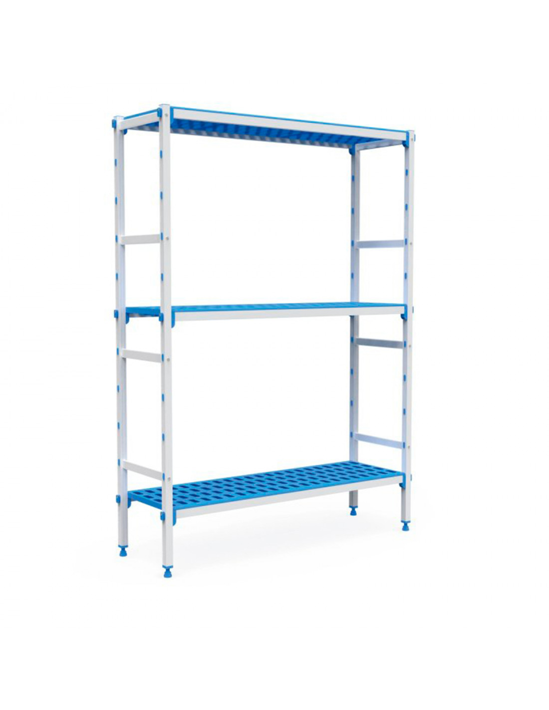 ANTICORROSIÓN: Estanterías inoxidables fabricadas con estructura de aluminio anodizado especial que las hace resistentes al frío y al calor, llegando a soportar desde -30ºC hasta +75ºC. Estantes/parrillas de polipropileno apto para uso alimentario.