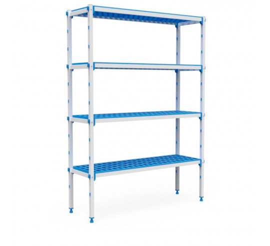 Estanterías inoxidables fabricadas con estructura de aluminio anodizado especial que las hace resistentes al frío y al calor, llegando a soportar desde -30ºC hasta +75ºC. Estantes/parrillas de polipropileno apto para uso alimentario.