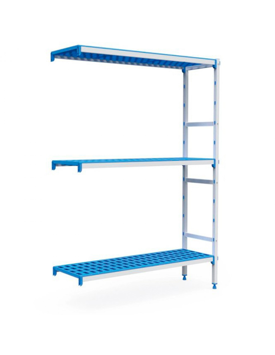 ANTICORROSIÓN: Estanterías inoxidables fabricadas con estructura de aluminio anodizado especial que las hace resistentes al frío y al calor, llegando a soportar desde -30ºC hasta +75ºC. Estantes/parrillas de polipropileno apto para uso alimentario.