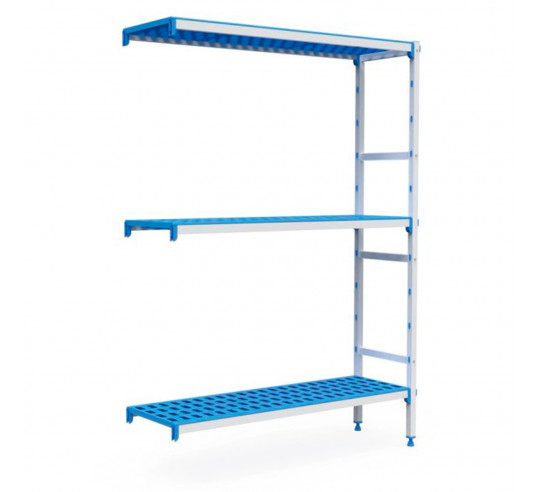 ANTICORROSIÓN: Estanterías inoxidables fabricadas con estructura de aluminio anodizado especial que las hace resistentes al frío y al calor, llegando a soportar desde -30ºC hasta +75ºC. Estantes/parrillas de polipropileno apto para uso alimentario.
