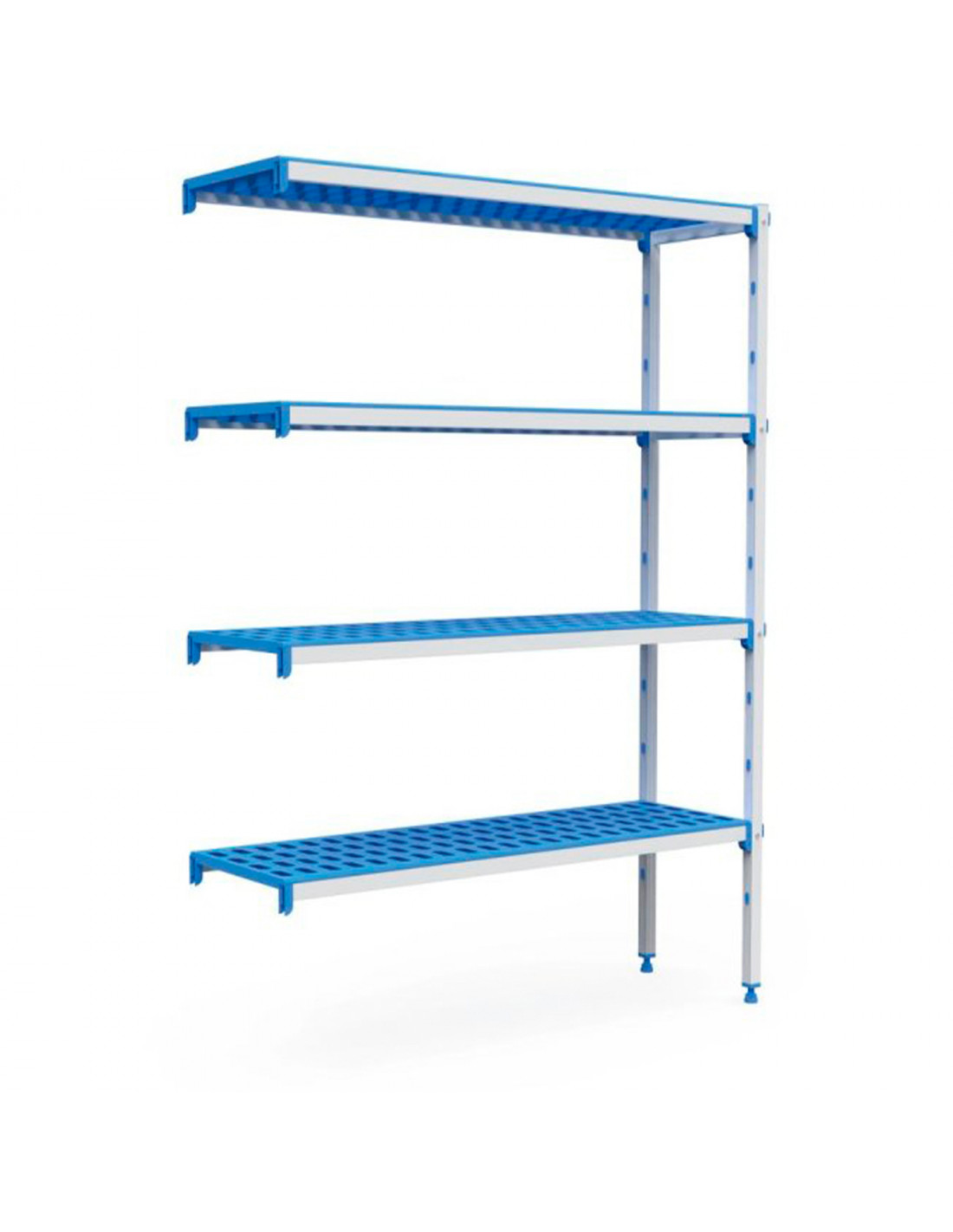 ANTICORROSIÓN: Estanterías inoxidables fabricadas con estructura de aluminio anodizado especial que las hace resistentes al frío y al calor, llegando a soportar desde -30ºC hasta +75ºC. Estantes/parrillas de polipropileno apto para uso alimentario.
