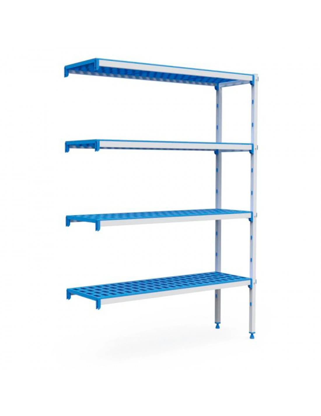 ANTICORROSIÓN: Estanterías inoxidables fabricadas con estructura de aluminio anodizado especial que las hace resistentes al frío y al calor, llegando a soportar desde -30ºC hasta +75ºC. Estantes/parrillas de polipropileno apto para uso alimentario.