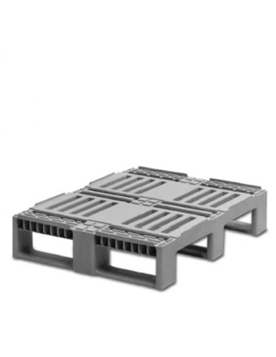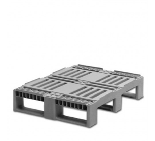 En plástico que cumple con los requisitos de la industria alimentaria. Material: HDPE color gris. Compatible con medidas norma Europa.