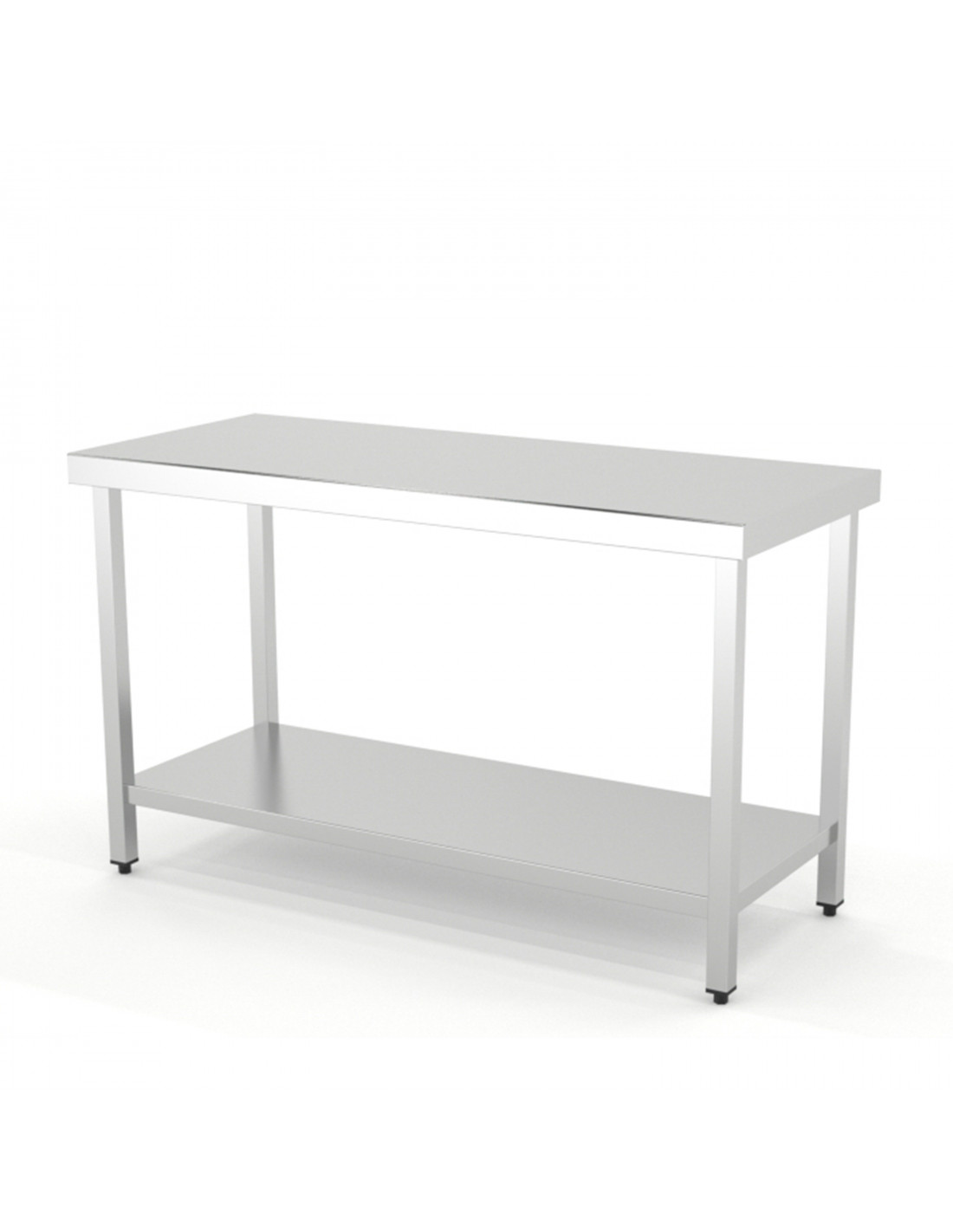 Construidas en Acero Inoxidable AISI 304 18/10 satinado y reforzadas con omega. Frontal soldado de 60mm en punto redondo. Patas de tubo 40x40 con taco regulable de 60mm. Estante reforzado con omega central. 6 patas a partir de 2000mm.