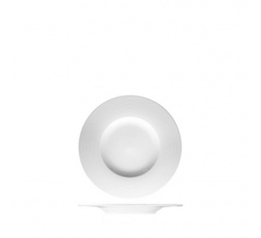 Porcelana con base blanca en glaseado mate y finas líneas blanca grabadas, aportando distinción y elegancia a la mesa. Se complementa perfectamnerte con ESS LINEO NEGRO