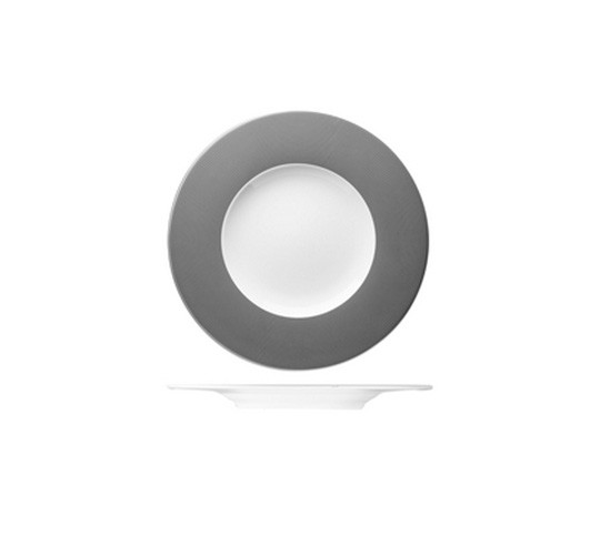 Porcelana con base blanca en glaseado mate y finas líneas negras grabadas, aportando distinción y elegancia a la mesa. Se complementa perfectamnerte con ESS LINEO BLANCO